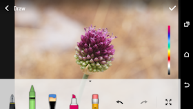 Nella modalità Eleganza è possibile scegliere tra diverse cornici e fare alcuni disegni sulla foto usando il tratto di una penna, matita, evidenziatore e altro ancora. È anche possibile modificare il colore e lo spessore di ogni strumento.